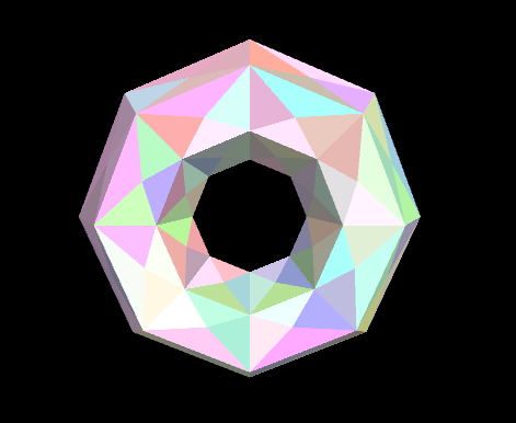 This is a Processing / Python program that reads and displays various mesh descriptions from a file. The video above showcases the functionality. It can display flat or smooth shaded meshes, with either white or random colors. It can also calculate the triangulated dual of the current mesh (shown in the last part of the video.)
