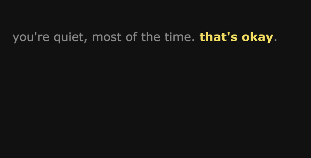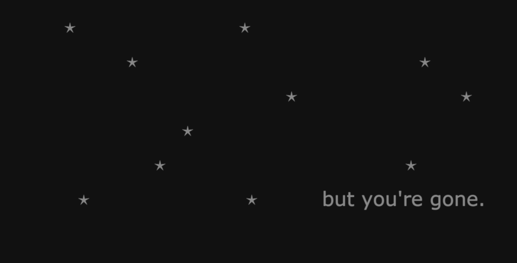 This poem takes this concept and compares it to relationships and memories we have of other people. Memories can seem fresh and strong even though their source is gone; however, eventually life catches up and all the “stars” die out. The player is able to navigate the stars in any order they wish, therefore creating a slightly different individual experience and interpretation depending on the order.